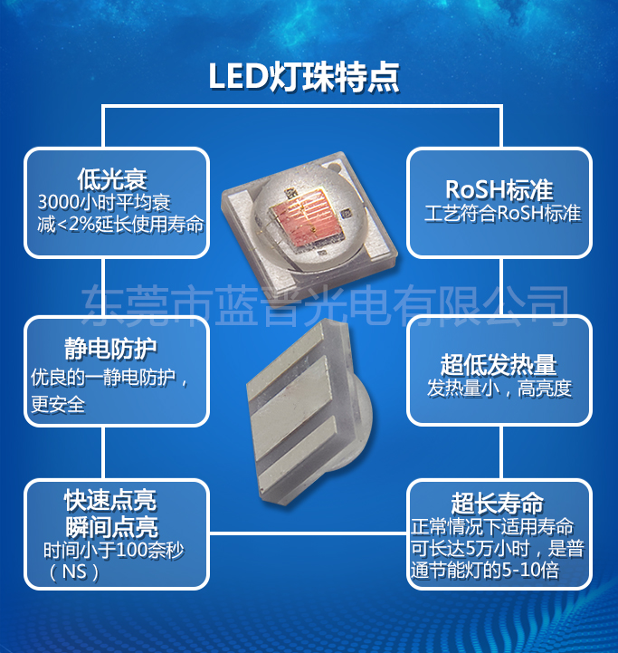 3535藍(lán)光1-3W貼片LED燈珠手機(jī)指示燈