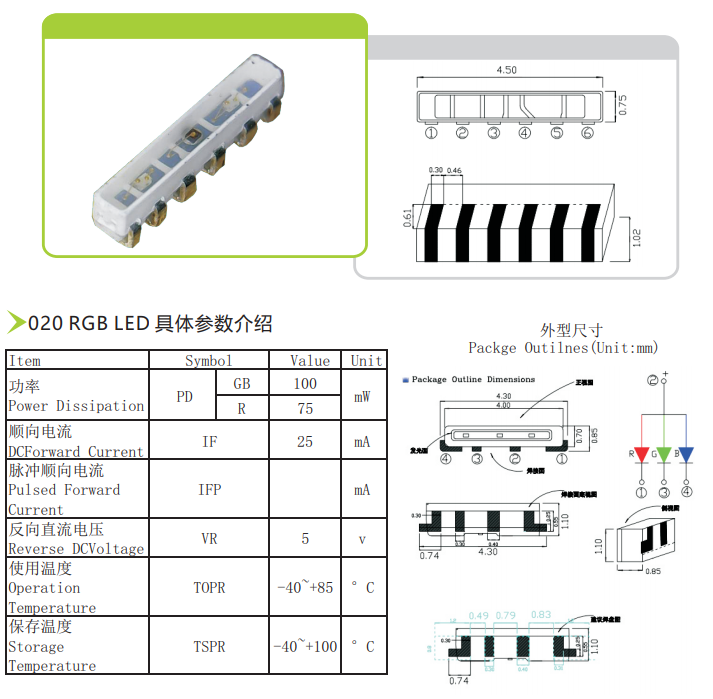 產品特征:尺寸小、應用廣泛、亮度高、可靠性強。