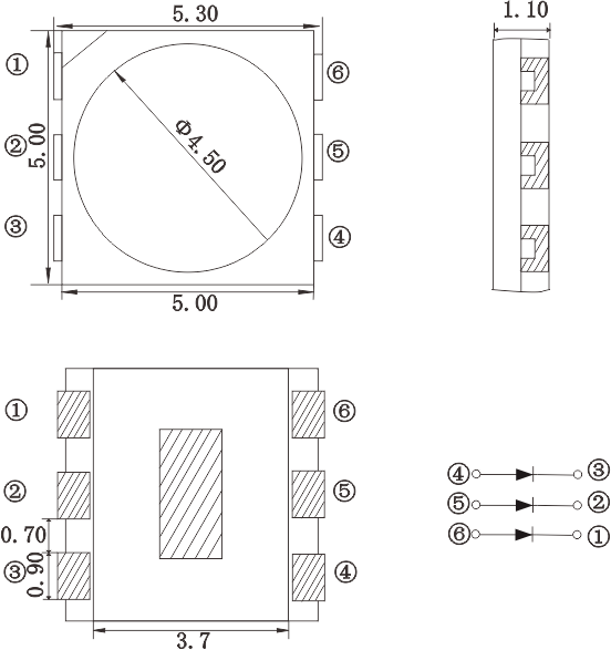 以下是5054RGB燈珠外觀圖