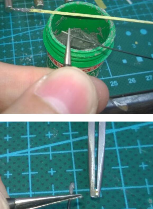 2、在導(dǎo)線上抹上少量的錫漿,藍(lán)晉光電小編建議看上圖,可根據(jù)自己經(jīng)驗(yàn)添加。