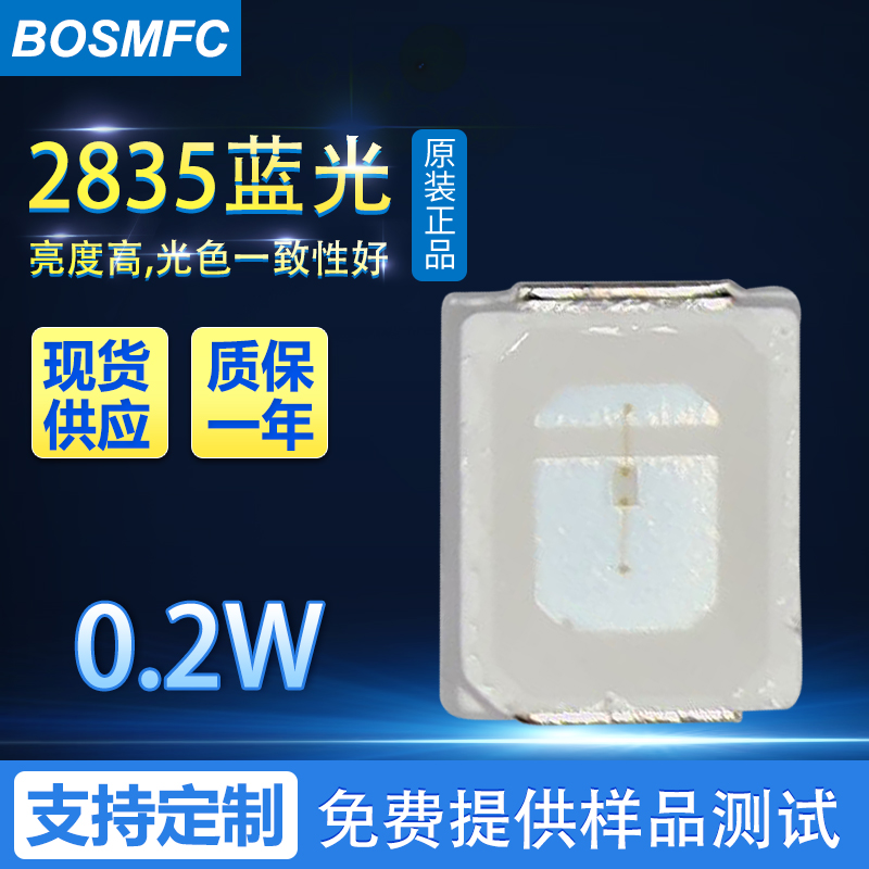 2835LED燈珠是中功率貼片超亮發(fā)光二極管,有0.1W 0.2W 和 0.5W。因其尺寸為2.8 (長) ×3.5 (寬) ×0.8 (厚) mm,因此按照貼片LED燈珠尺寸命名方法,我們把它稱為2835燈珠。