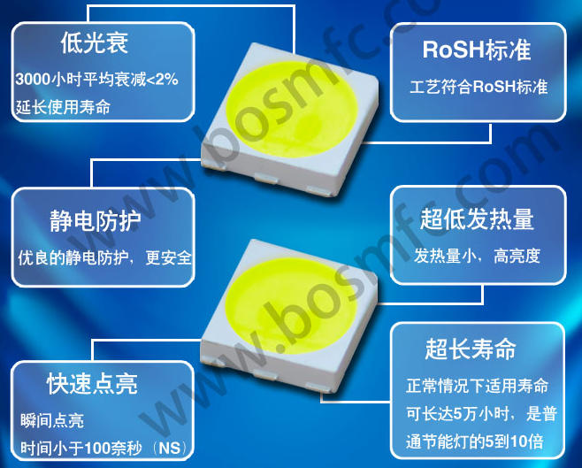 從硫化失效分析過程和可靠性測試,對此藍晉光電廠家研發(fā)團隊研發(fā)出防流化低光衰 防死燈 5050led晶元芯片燈珠,其產(chǎn)品特點:采用進口正規(guī)合格芯片和美國英特美熒光粉以及日本進口優(yōu)質硅膠膠水封裝等工藝專業(yè)生產(chǎn)5050led晶元芯片燈珠,其產(chǎn)品達到高亮度、低衰減、耗能小、壽命長、抗靜電能力強、光色-致性好、LED貼片壽命大于5萬小時等特點。并且產(chǎn)品完全符合國家環(huán)保無鉛制程產(chǎn)品要求。藍晉光電廠家5050led燈珠質量有保證,廠家直銷、價格合理、常規(guī)尺寸廠家都有庫存、交貨非常及時。