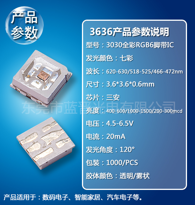3636全彩RGB6腳帶IC燈珠戶外背光LED